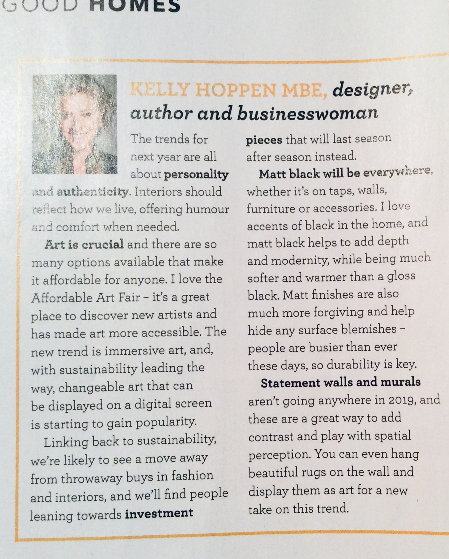 Kelly Hoppen MBE chats to ‘Good Housekeeping Magazine’.