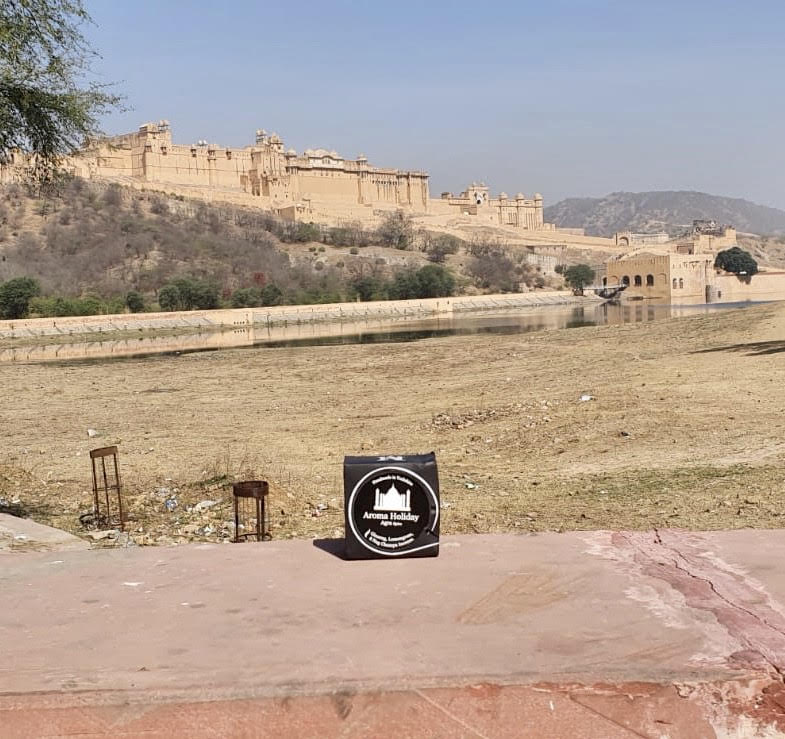 Nearing the end, our packaging seems a bit weary but it has been on an epic journey of over 5,000 miles! The Travel Tin made it to the magnificent Amber Palace! Capital of the Kachwaha Rajputs until 1727, this fort complex is an impressive place to visit.
